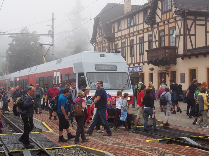 ポプラド駅からはタトラ電気鉄道に乗ります。電車はとても清潔で、時速50キロほどのスピードで山を登って行きます。まずは主要駅であるスタリースモコヴェッツ駅を目指します。