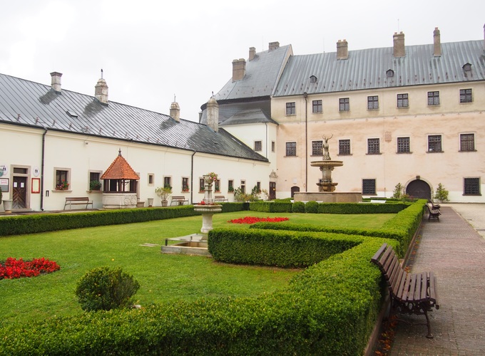 チェルベニーカメン城を見学するには75分のツアーに参加しなければなりません。外見は地味ですが、内装はなかなかユニーク。迫力満点のドラゴンの調度品や天井が立体的なホール、映画撮影にも使われたワイン地下室が見どころです。