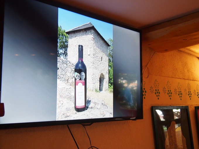 ワイン製造の見学はそこそこにして、さっそく試飲することに。マイクロワイナリーではありますが、きちんとした試飲室があります。試飲室ではプロモーションビデオが流れていました。