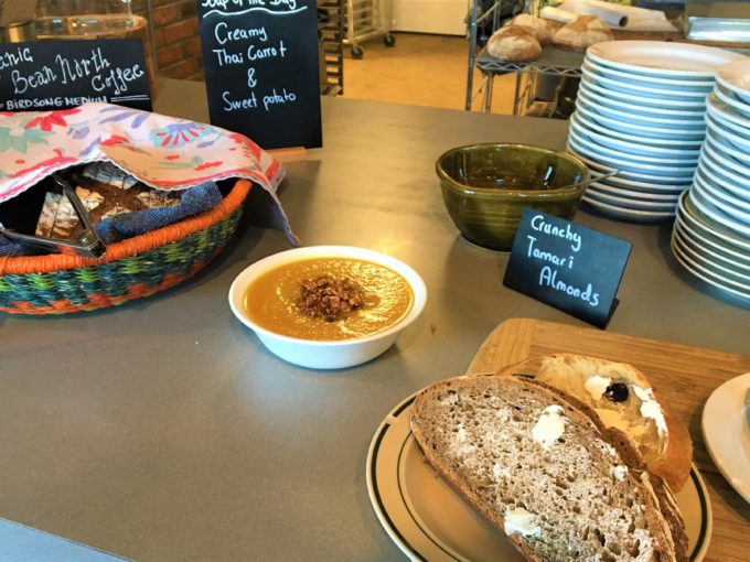 そしてここの日替わりスープは個人的にBaked Cafeより好み!嬉しいのは、サイドで作りたてのパンのスライスが楽しめる点です。