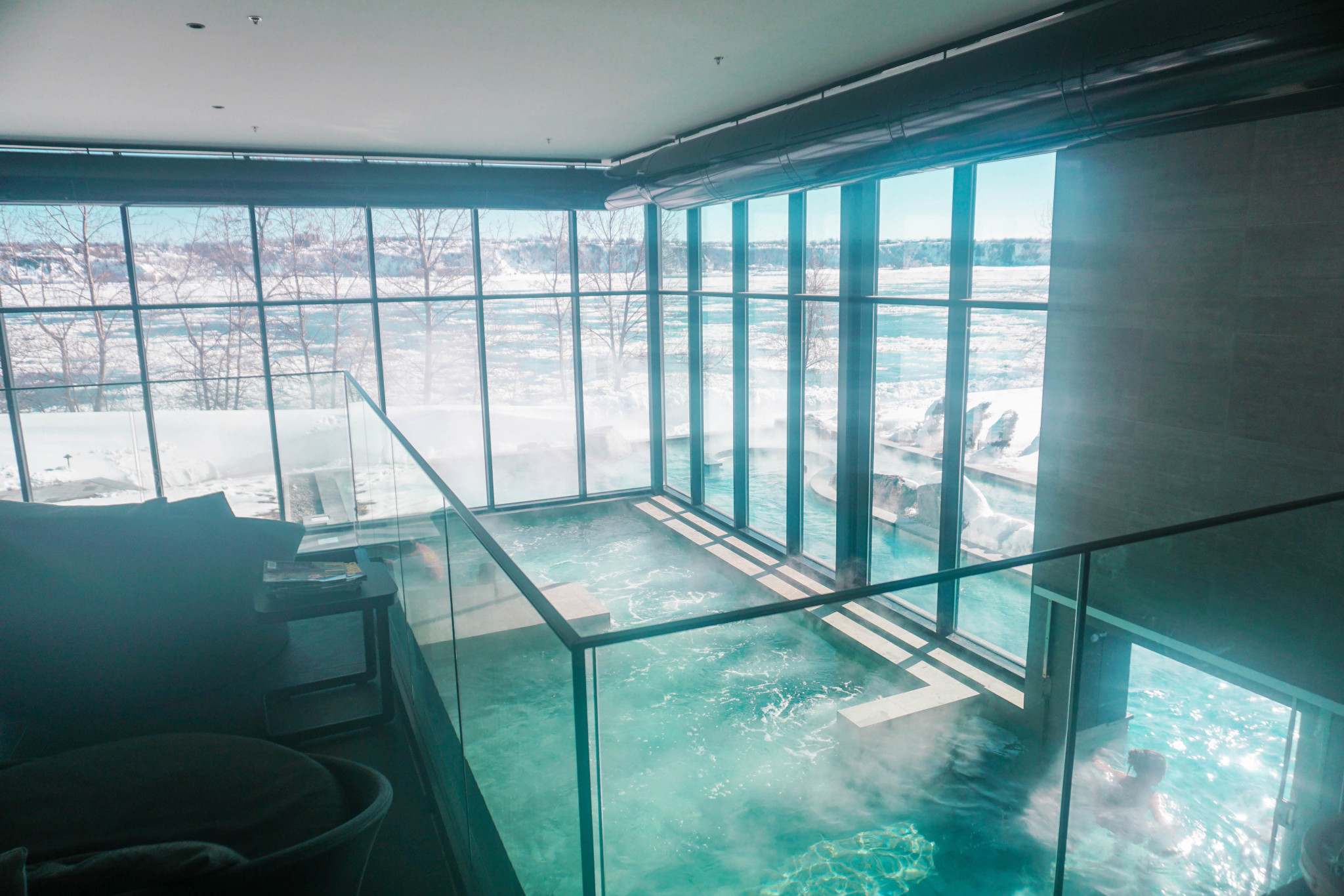 2018年にオープンしたばかりのこちらのスパは、なんと流氷が目の前というロケーションで温熱体験ができるとのこと。流氷が見られるスパってどういうこと?と半信半疑のまま、とりあえず水着に着替えて外に出てみます。