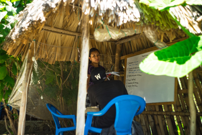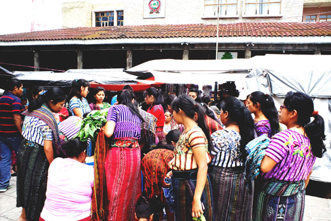 湖畔の村に住むマヤの先住民の女性たちは「ウイピル」と呼ばれる民族衣装を身に纏っています。