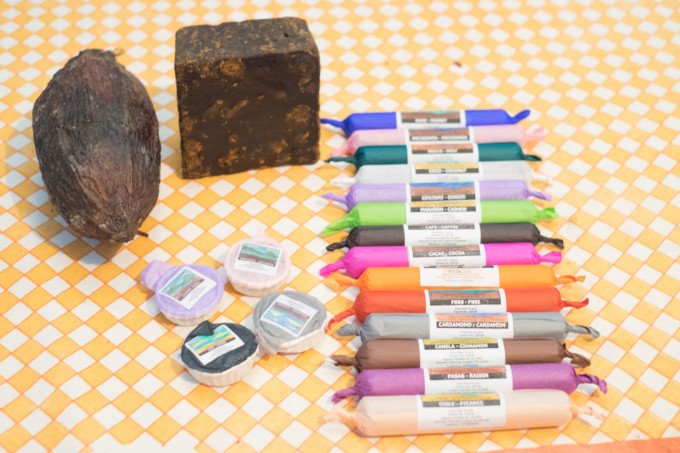 サンペドロには家庭ですべて手作業で作っているチョコレート工場が数件あります。もちろん無添加です。カカオの割合が多いのも特徴で、私が見学したところはカカオ80%、黒砂糖10%、ミルク10%でした。なんと包装紙の絵も手描きです。