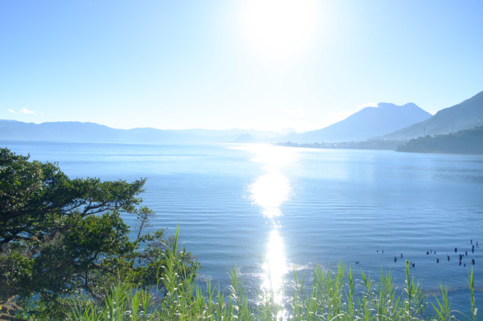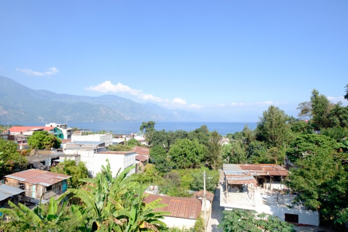 サンペドロは湖に面しており、景観が良いです。私は毎朝起きたら宿の屋上にのぼり、朝日を受けてキラキラと輝く湖と、湖を取り囲むまだ雲のかかっていない山々を眺めるのが日課でした。