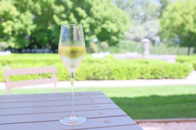 暑い中辿り着いた末に、キンキンに冷えたスパークリングワインを美しく整備された庭園を見ながら飲む。これぞ至福の時でした。